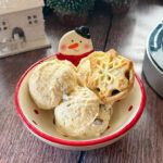 A delicious Christmas flavoured ice cream made in the Ninja Creami. A simple vanilla ice cream base with clementine juice with some mince pies crumbled in.